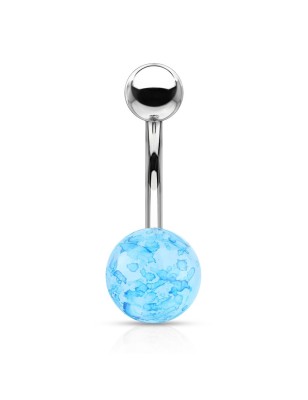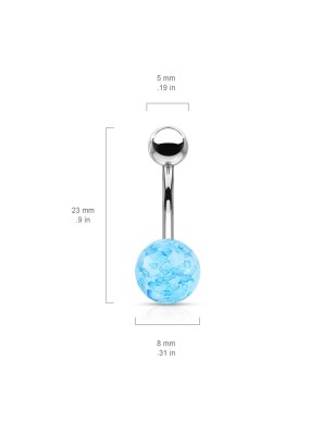 Piercing pour nombril de type banane, en acier chirurgical, avec des boules acrylique représentant de fausses pierres précieuses.