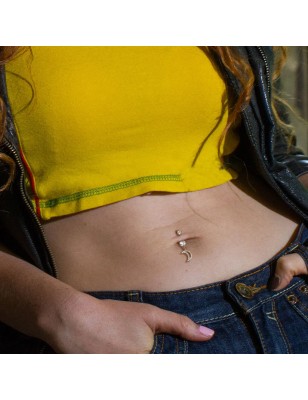 Piercing pour le nombril en acier chirurgical avec pendentif en forme de lune.