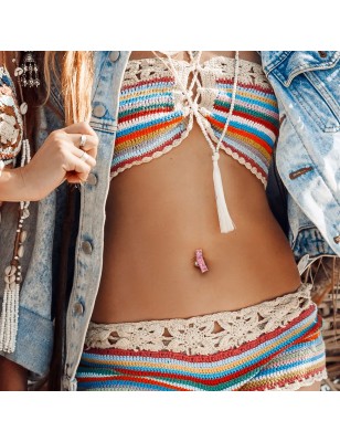 Piercing pour nombril inversé, serti de 8 pierres rectangulaires.