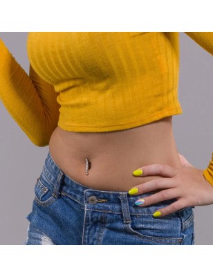 Piercing pour nombril inversé, serti de 8 pierres en zircon de forme carrée.