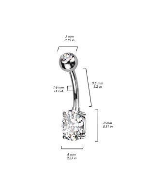 Piercing pour nombril en titane de grade ASTM F136, serti d'un zircon en forme de coeur.