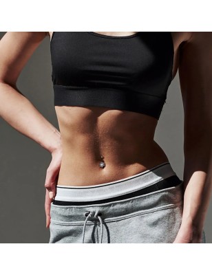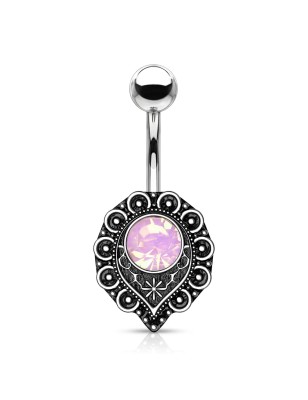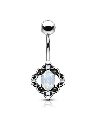 Piercing pour le nombril avec motif filigrane, serti d'un cristal opalescent.
