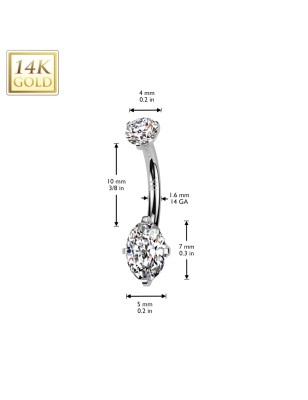 Piercing nombril en or blanc 14K à vissage interne pierre en marquise