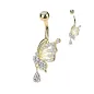 Piercing pour le nombril, en acier chirurgical 316L, plaqué or 14 carats, représentant un papillon avec l'aile pavée de strass et une larme en pendentif.
