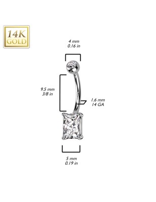 Piercing pour le nombril en véritable or blanc 14 carats, serti d'une pierre baguette en zirconium blanc.