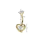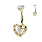 Piercing de nombril entièrement réalisé en titane de grade ASTM F-136, plaqué de couleur dorée, avec embout à vissage interne et représentant un coeur serti d'une pierre en zirconium blanc.