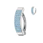 Piercing de type anneau clicker, spécialement conçu pour le nombril, en acier chirurgical 316L, pavé de 3 rangées de petites pierres en zirconium turquoise.