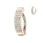 Piercing de type anneau clicker, spécialement conçu pour le nombril, en acier chirurgical 316L, plaqué or rose 14K, pavé de 3 rangées de petites pierres en zirconium aurore boréale.
