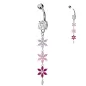 Piercing pour le nombril, en acier chirurgical 316L, serti de deux pierres en zirconium blanc, avec un pendentif représentant trois fleurs multicolores.