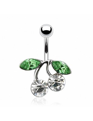 Piercing en acier chirurgical de type "banane" pour le nombril, représentant une cerise, serti de plusieurs gemmes.