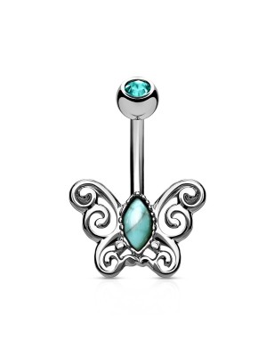 Piercing en acier chirurgical de type "banane" pour le nombril, représentant une libellule.
