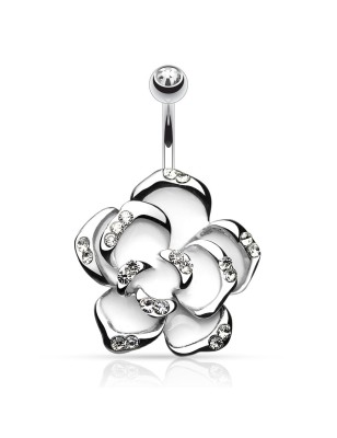 Piercing nombril Acier Chirurgical Double Strass Blanc