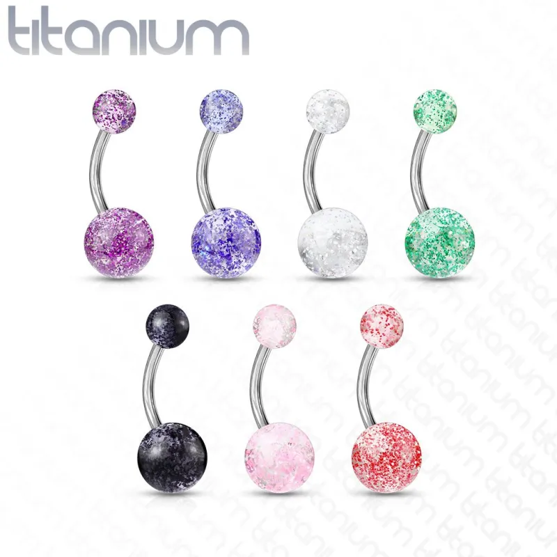 Piercing pour nombril en titane G23, avec billes en acrylique "ultra glitter".