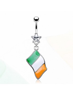 Piercing nombril avec pendentif drapeau allemand et strass scintillant. Un bijou unique pour afficher vos couleurs avec style.