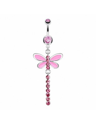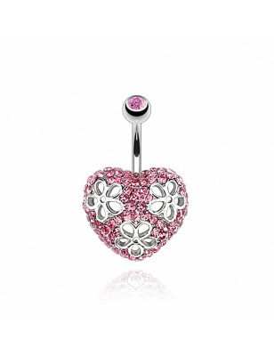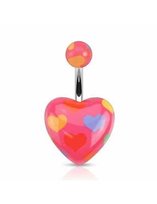 Piercing pour le nombril en acier chirurgical, avec un coeur en acrylique, sur lequel sont imprimés des coeurs de différentes couleurs.