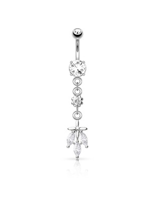 Piercing pour le nombril en acier chirurgical, représentant une fleur serti de plusieurs pierres en zircon claires.