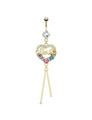 Piercing pour le nombril en acier plaqué or, avec un pendentif représentant une feuille composée de trois pierres en zircon.