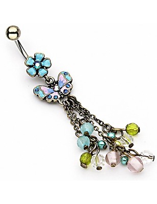 Piercing pour le nombril plaqué or, avec un pendentif représentant deux chaines.