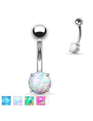 Piercing pour le nombril en acier chirurgical plaqué or, sertie d'une pierre en opale.