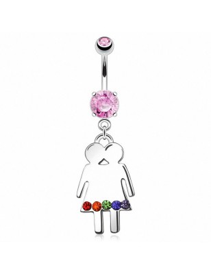 Ce piercing se compose d'une barre en bioflex avec deux billes en acier chirurgical et un pendentif serti de strass représentant un petit garçon.