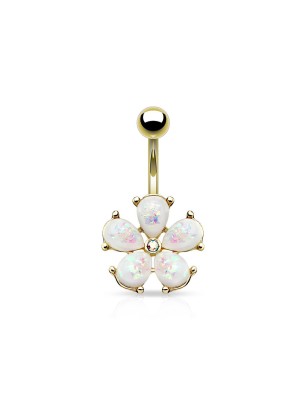 Piercing de nombril serti d'une pierre solitaire en zirconium.