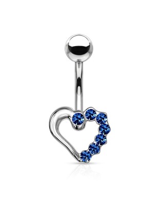 Piercing pour nombril représentant un coeur dont la moitié est pavée de strass.