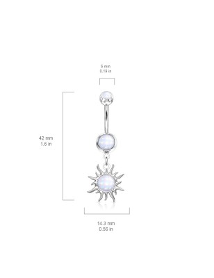 Piercing nombril soleil tribal pierre lumineuse blanche