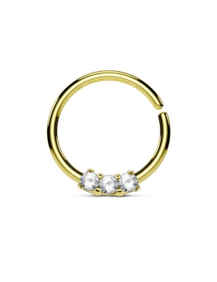 Piercing de type labret, pour le cartilage de l'oreille et l'hélix, en acier chirurgical 316L, avec placage de couleur rosée, représentant un éclair pavé de petites pierres en zirconium blanc.