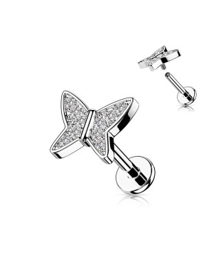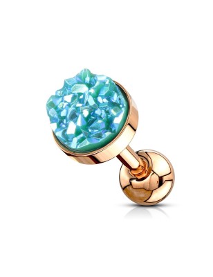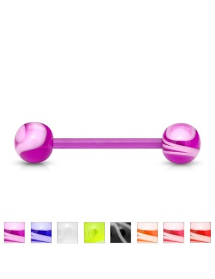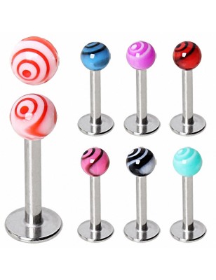 Piercing de type labret, pour le cartilage de l'oreille et l'hélix, en acier chirurgical 316L, représentant un coeur strié aux couleurs arc en ciel.
