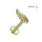 Piercing labret pour l'oreille, en titane de grade ASTM F136 plaqué de couleur dorée, avec embout à vissage interne représentant une aile d'ange.
