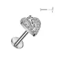 Piercing labret pour l'oreille (cartilage, hélix), en acier chirurgical 316L, avec embout push-in (sans vissage) représentant un coeur pavé de strass ainsi qu'un zirconium en forme de triangle.