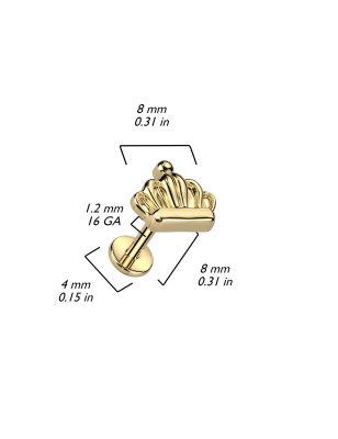 Piercing labret pour l'oreille, en titane de grade ASTM F136 plaqué de couleur dorée, avec embout à vissage interne représentant une couronne.