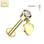 Piercing labret, pour l'oreille (hélix, cartilage), en véritable or jaune 14 carats. L'embout à vissage interne est serti d'un zirconium et s'accompagne d'un pendentif représentant un coeur.