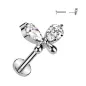 Piercing labret pour l'oreille (cartilage, hélix), en acier chirurgical 316L, avec embout push-in (sans vissage) représentant un papillon serti de deux zirconiums blanc.