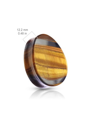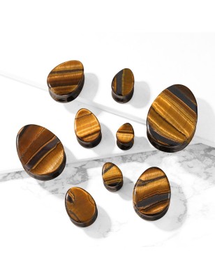 Piercing plug pour le lobe de l'oreille, en oeil de tigre, en forme de larme.