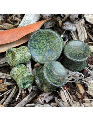 Piercing de type plug, pour le lobe de l'oreille, en pierre naturelle, la serpentine verte.
