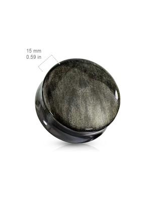 Piercing plug pour le lobe de l'oreille, en pierre naturelle d'obsidienne aux reflets dorés.