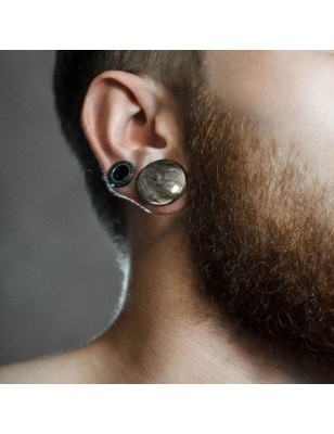 Piercing plug pour le lobe de l'oreille, en obsidienne.