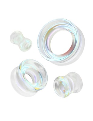 Piercing tunnel pour le lobe d'oreille, en verre de couleur aurore boréale.