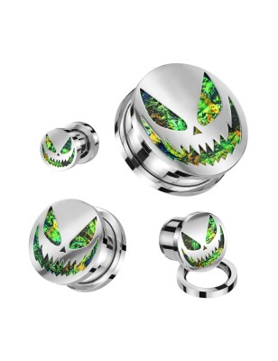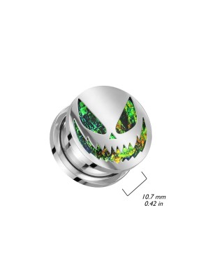 Piercing tunnel en acier chirurgical, représentant un visage style Halloween.