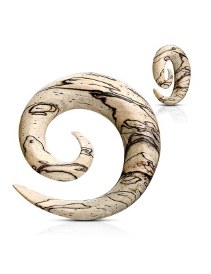Piercing de type écarteur (en spirale) pour l'élargissement du lobe de l'oreille, organique, en bois de buffle.
