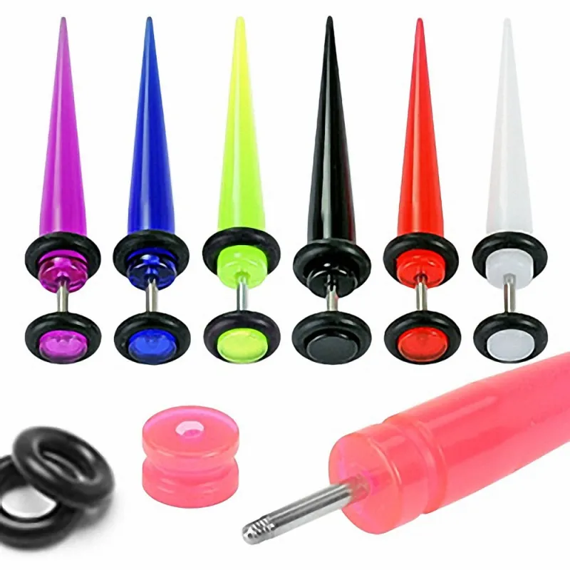 Faux écarteur pour le lobe de l'oreille, en acrylique UV (avec une tige en acier chirurgical).