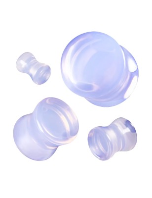 Piercing plug pour le lobe de l'oreille, en pierre opalite violette.