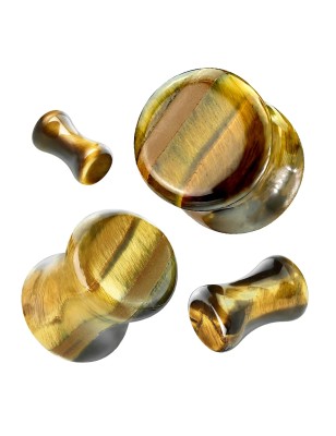 Piercing plug pour le lobe de l'oreille, en pierre naturelle d'oeil de tigre.