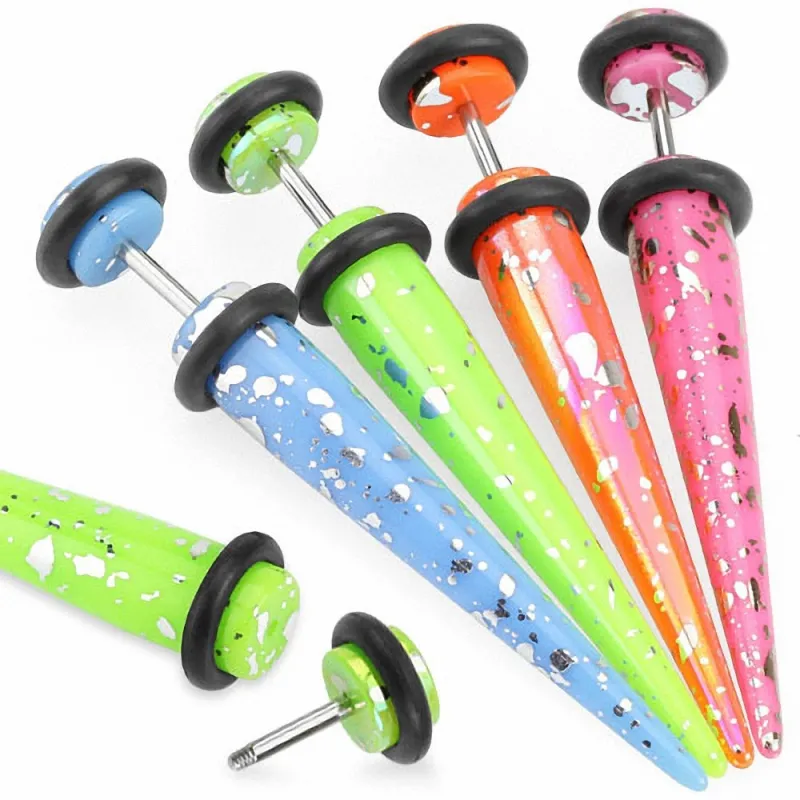Faux écarteur pour l'oreille, en acrylique, représentant des tâches.