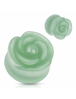 Piercing de type plug pour le lobe de l'oreille, en opale (une pierre entièrement naturelle) taillée en forme de coeur.