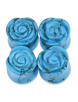 Piercing plug pour le lobe de l'oreille, en turquoise, représentant une rose.