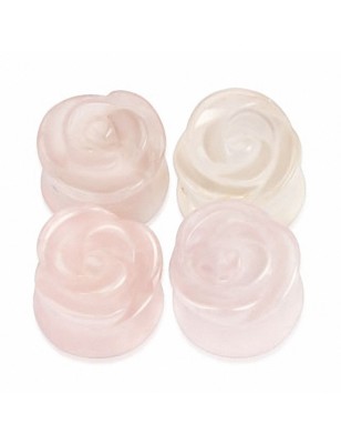 Piercing plug pour le lobe de l'oreille, en quartz rose, représentant une rose.