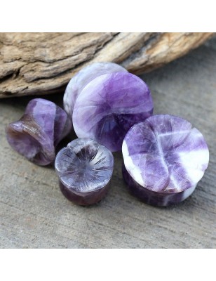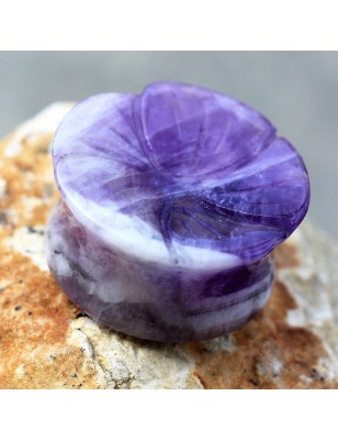Piercing plug pour le lobe d'oreille, en améthyste : une pierre naturelle.
