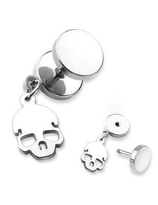 Piercing aspect faux plug pour l'oreille, en acier chirurgical, avec un pendentif représentant un crâne.